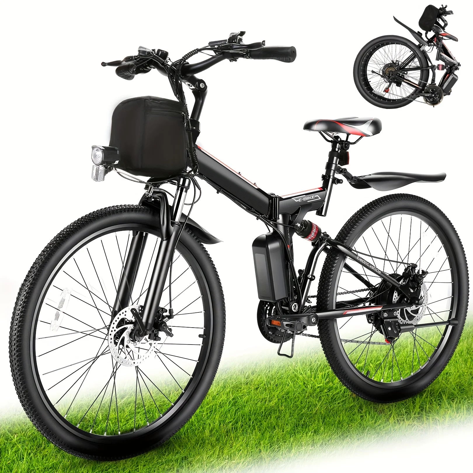 26" Folding Electric Bike for Adults, with 500W Motor,48V 20MPH Up to 50Miles Range, Cruise Control