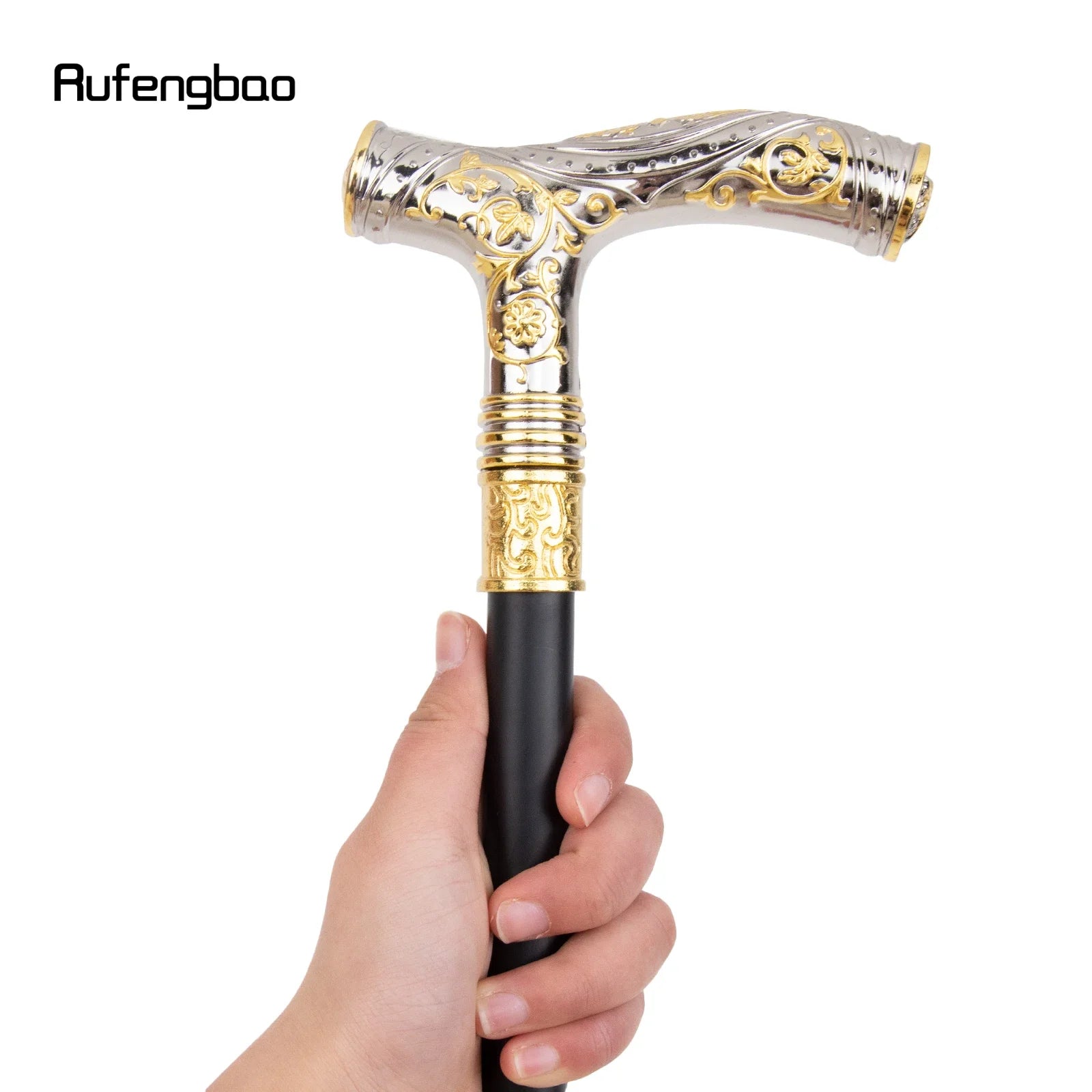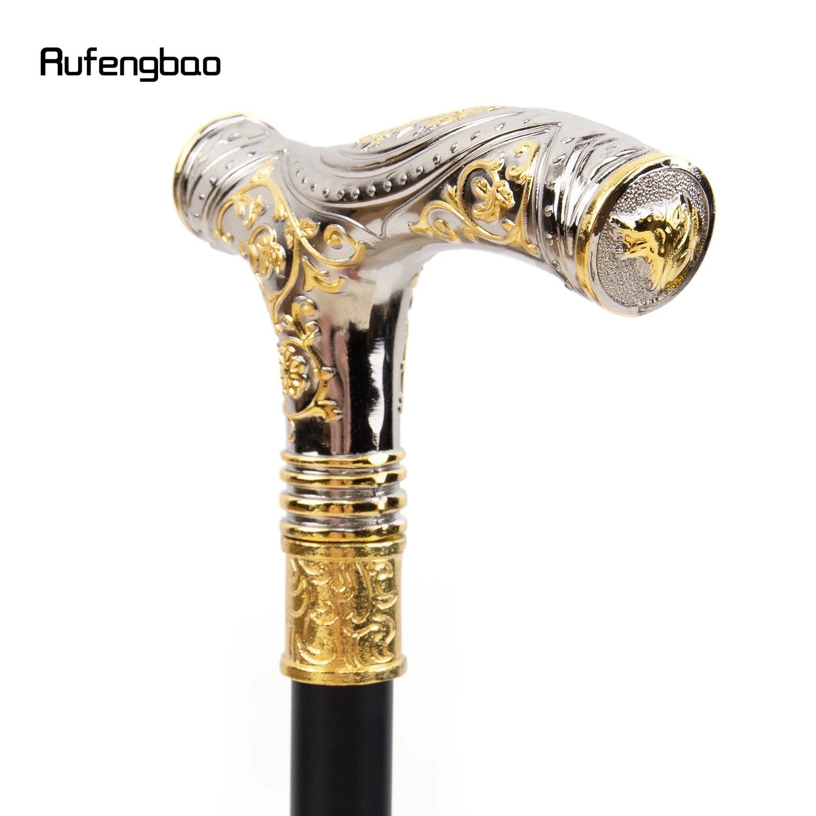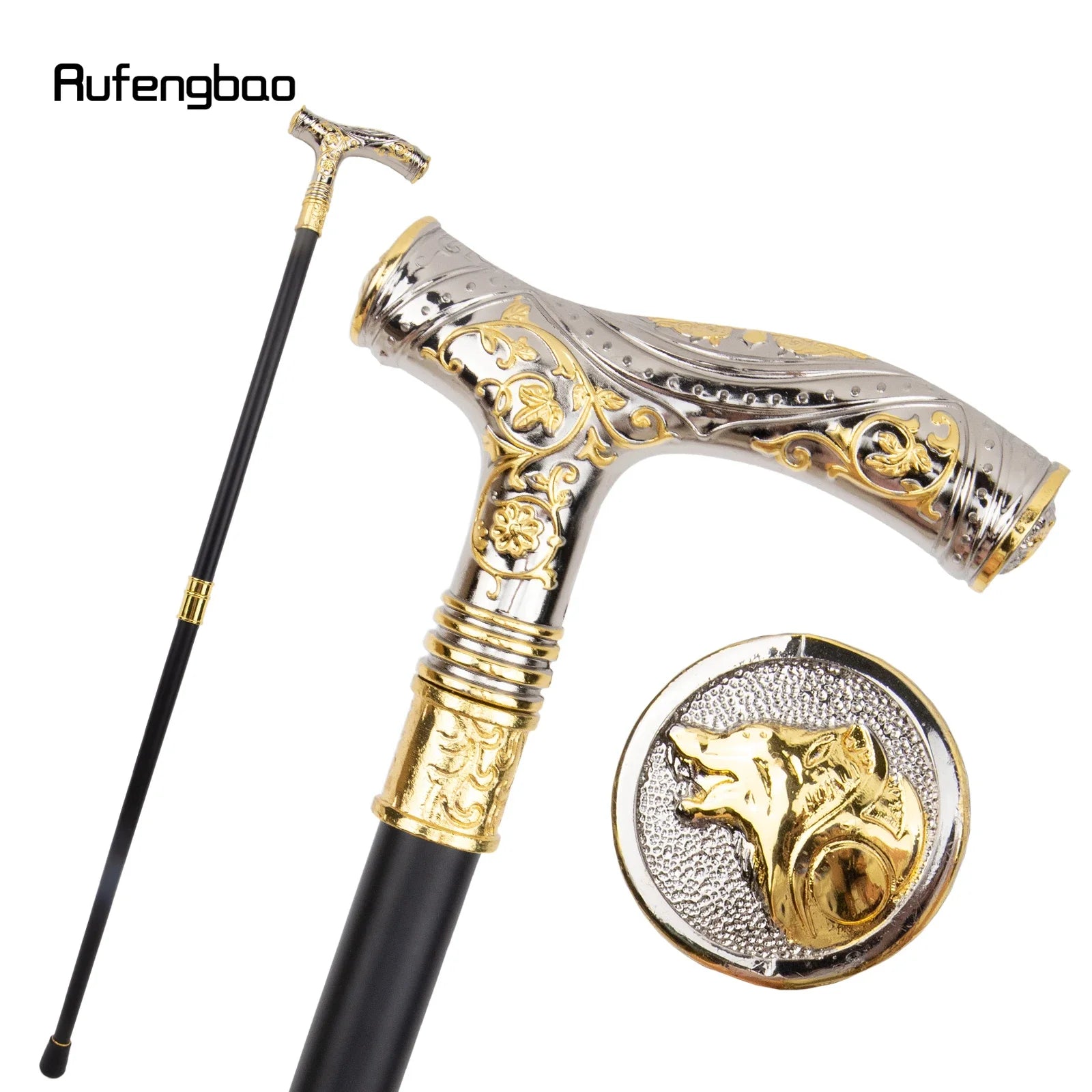Golden White Wolf Head Flower Totem Relief Walking Cane Fashion Walking Stick Gentleman Crosier Knob Walking Stick 93cm