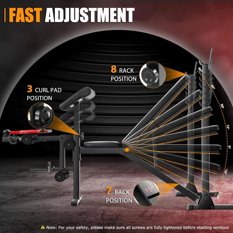 Weight Bench Set and Curl, 900LBS Profesional Bench Press Set and Barbell Rack with Safety Spotter Catches, P